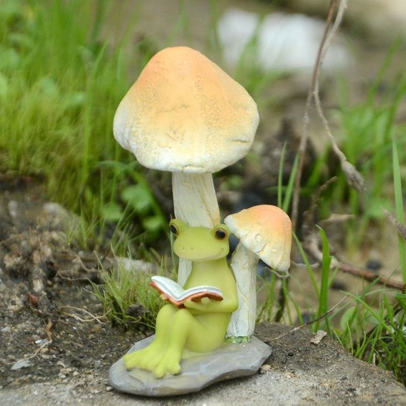 🔥The little frog reads on leaves, soft stones, and mushrooms, adding a touch of imagination to any space and exuding a unique charm.